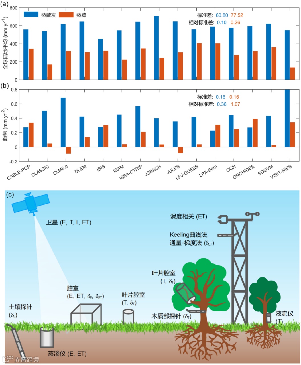 近几十年来,全球陆地植被经历了大范围的显著变化。植被变化会改变地表一系列的生物物理过程,影响陆地与大气之间的水分和能量交换,并可能进一步反馈气候系统且影响陆地水循环。然而,以往研究主要关注陆地蒸散发总量,却忽视了植被蒸腾这一关键组分,导致近些年来生态水文研究中的诸多争论。该研究系统性梳理了近期关于植被变化的气候和水文效应研究的争论,通过对比分析多个陆面模式对蒸散发和蒸腾的模拟结果,发现不同模式对植被蒸腾分量的估算差异巨大,是导致模式不确定性以及近期生态水文研究中争论的主因。因此,该观点文章旨在推动学界进一步约束植被蒸腾模拟的不确定性,并针对如何实现这一愿景提出了系列建议。