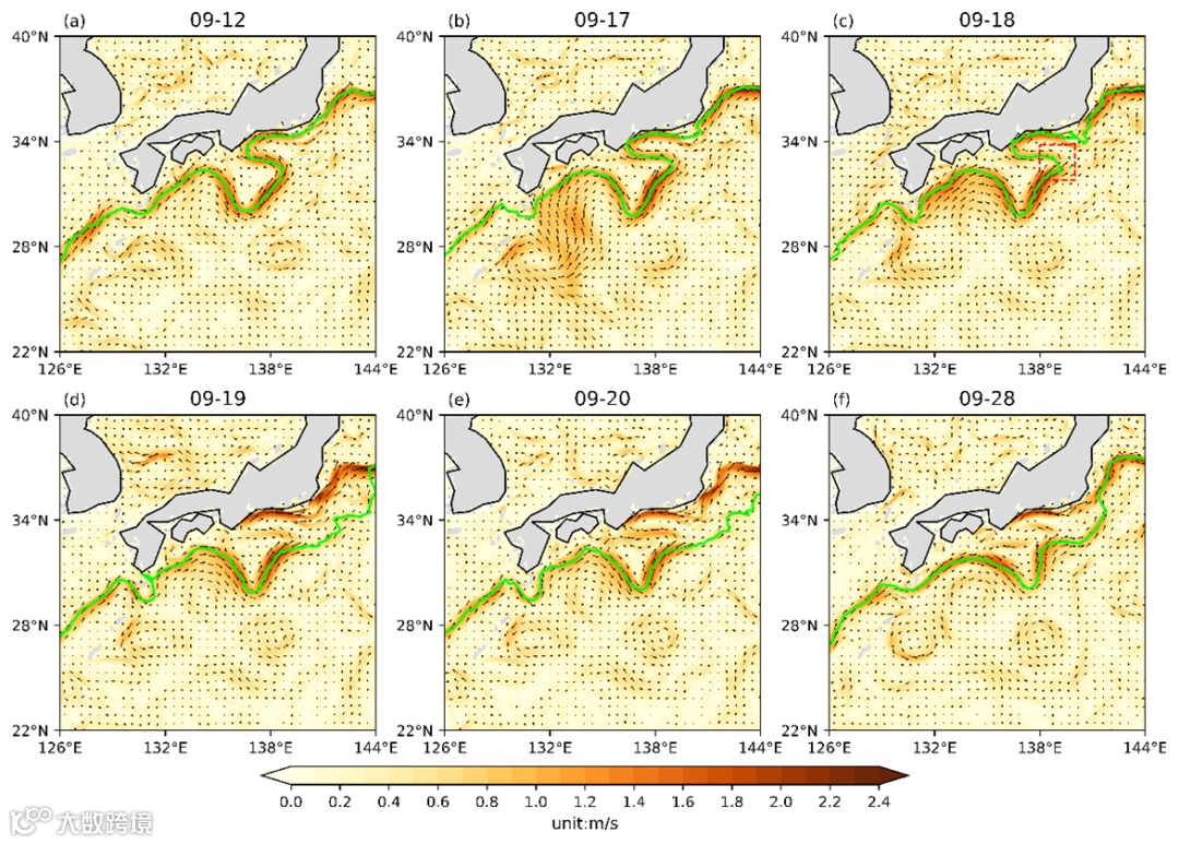 台风“南玛都”侵入前、期间、后“系统”模拟的表层黑潮日均演变