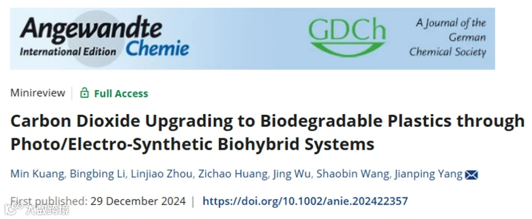 近日,东华大学杨建平研究员、乌婧研究员、况敏研究员、和王少彬教授在Angewandte Chemie International Edition上发表题为“Carbon Dioxide Upgrading to Biodegradable Plastics through Photo/Electro-Synthetic Biohybrid Systems”的综述性文章(图1)。该综述首先论述了光/电催化-生物耦合系统在二氧化碳还原反应中的优势和必要性;然后进一步探讨了结合光/电化学与生物系统耦合制备PHA的多重策略,及其在提升生产效率中的应用。最后总结了实现协同二氧化碳升级转化策略和提高其技术经济可行性的潜在途径和必要措施。