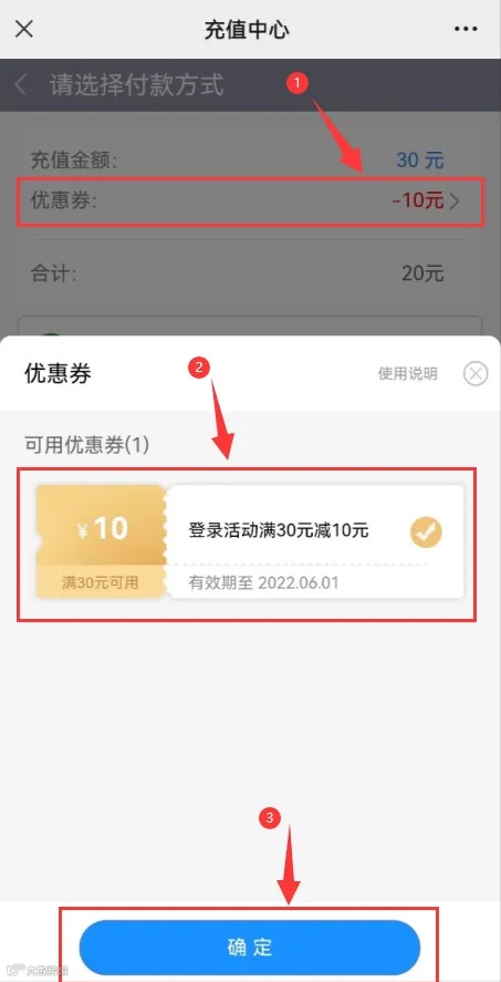 ③点击优惠券栏,选择需要使用的优惠券,点击确定,即可在付款时自动减免优惠券金额~