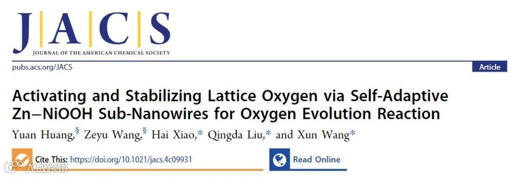 Activating and Stabilizing Lattice Oxygen via Self-Adaptive Zn−NiOOH Sub-Nanowires for Oxygen Evolution Reaction. (JACS, 2024. DOI: 10.1021/jacs.4c09931)