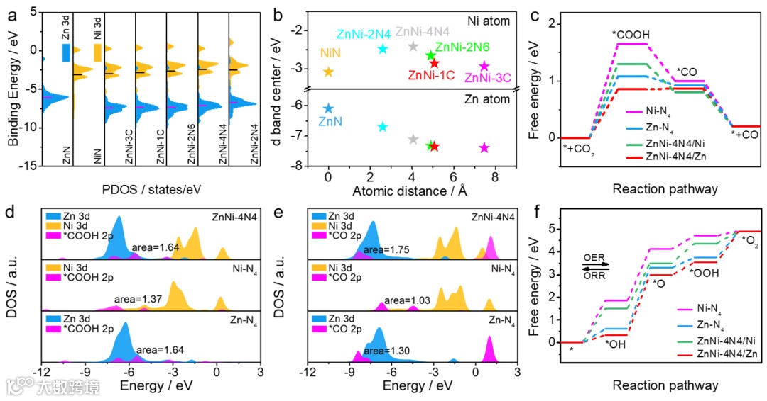 综上所述,我们通过简单的热解方法,实现锌、镍原子与氮配位桥连结构的合理调控,充分发挥Zn-N4和Ni-N4配体之间的强协同作用,调控电化学界面制备可调节d带中心的双活性位点。作为电催化剂,ZnNi-DCN-1000表现出优异的CO2RR、OER和ORR多重电催化活性。理论计算揭示了基于描述符的设计原则,调整金属-氮-碳配体的桥连结构,能够显著调控d带电子状态,优化对反应中间体的吸附过程,从而提高电催化性能。同时,集成的CO2-H2O装置可以有效解决清洁能源的间歇性问题。该工作通过揭示d带中心变化规律设计双原子高效电催化剂,展示了集成电催化过程在实现能量储存和转换方面的巨大潜力。