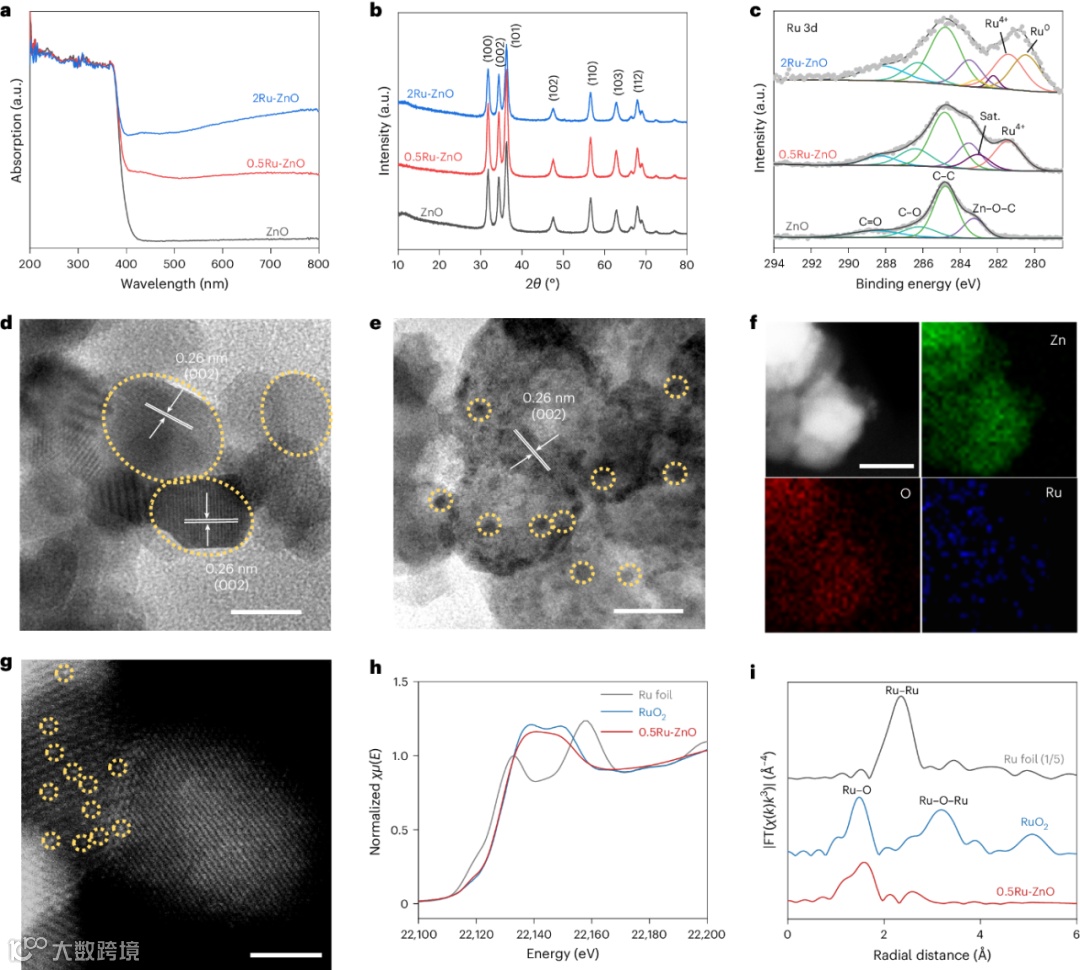 通过STEM、K-edge XANES 和 EXAFS等表征证实对于低含量的Ru是以单原子形式负载在ZnO载体上。