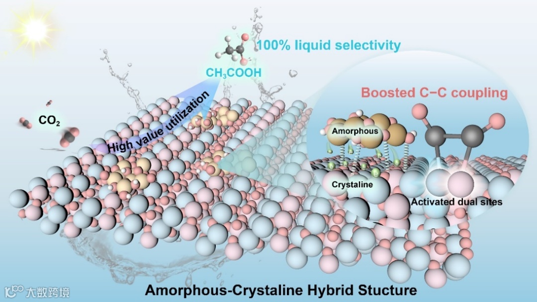 示意图1. 非晶-晶体杂化结构催化剂光还原CO2为CH3COOH的示意图。