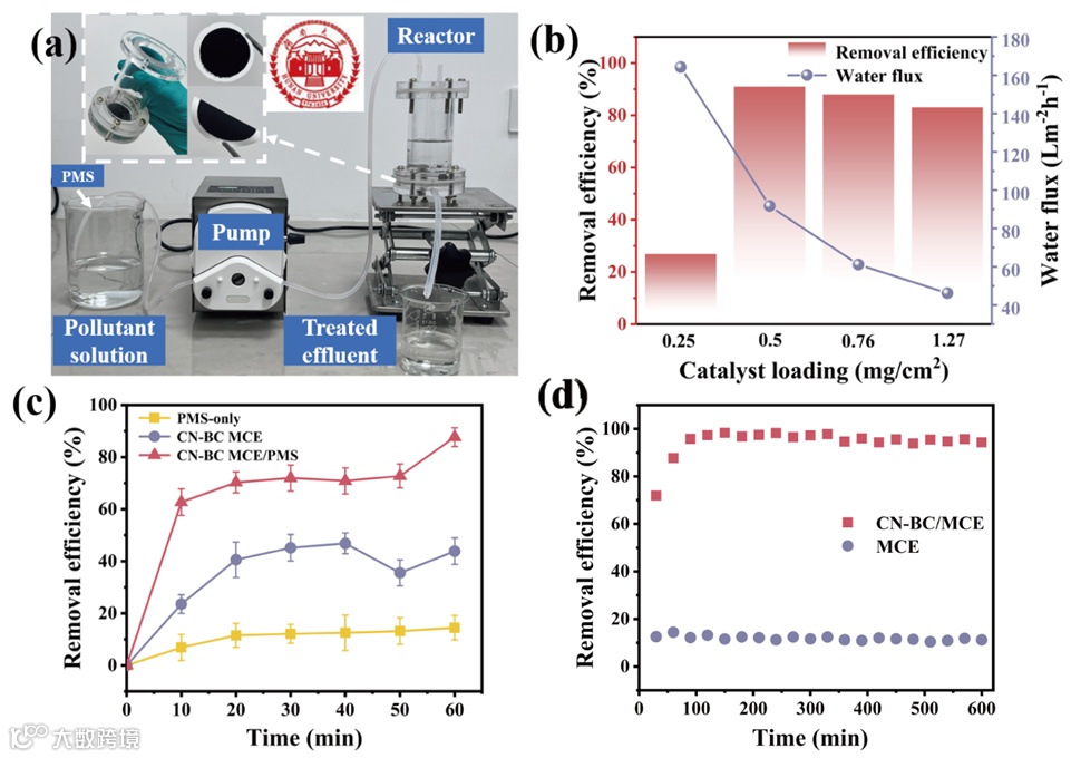 图 CN-BC/MCE膜/PMS系统在污水处理中的应用