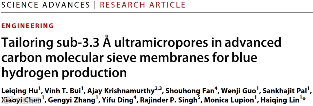 蓝色氢是碳中和社会的重要能源载体。在这个系统中,氢气是通过化石燃料的常规重整或气化产生的,而二氧化碳的副产品则被捕获以供利用或封存。H2 与 CO2 的分离是该工艺具有经济竞争力的关键步骤。膜技术因其高能效而备受关注,其关键在于高性能材料的高透气性以降低膜面积和系统成本以及高选择性提高产品纯度。在溶液-扩散模型的基础上,气体渗透率(PA)表示为:PA = SA× DA,其中 SA 为气体溶解度,DA 为气体扩散率。气体选择性 (αA/B)是两种气体的渗透率之比以及溶解度选择性 (SA/SB) 和扩散选择性 (DA/DB) 的组合。临界温度为 304K 的 CO2 更易冷凝,因此比 H2(33 K) 具有更高的溶解度,而动力学直径为 2.89 Å 的 H2 比 CO2 (3.3 Å) 具有更高的扩散率。因此,膜材料应具有强大的尺寸筛分能力和 2.89 至 3.3 Å 之间的自由体积,以最大限度地提高 H2/CO2 扩散选择性。