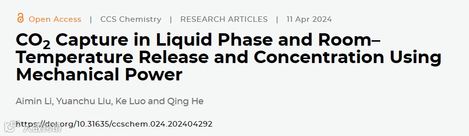 题目:CO2 Capture in Liquid Phase and Room–Temperature Release and Concentration Using Mechanical Power