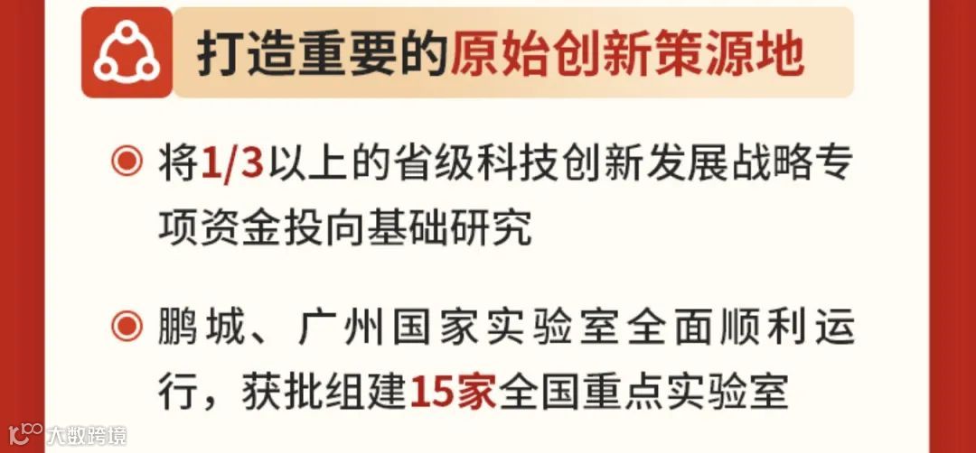 广东省发布了2023年工作回顾。在“一体推进教育强省、科技创新强省、人才强省建设,高水平科技自立自强释放强大动能”方面,提到鹏城、广州国家实验室全面顺利运行,获批组建15家全国重点实验室。