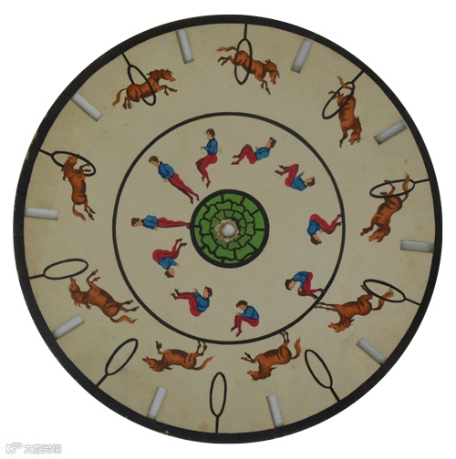 Buzzfeed网站曾上传了第一张猫咪的GIF图,而距此150多年前,人们已经被循环动画深深吸引。当然,那时还没有PS和截屏来制作GIF图像,也没有Tumblrs 和 Twitter来分享这些精彩的作品。不过,艺术家们凭借着光学工具,诸如西洋镜、转盘活动影像镜、幻影转盘以及其他一些名字稀奇古怪的小家什将自己的图画带入了生活。