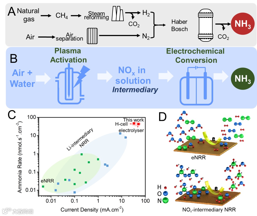 图1. 等离子体结合电催化工艺实现绿色制氨。