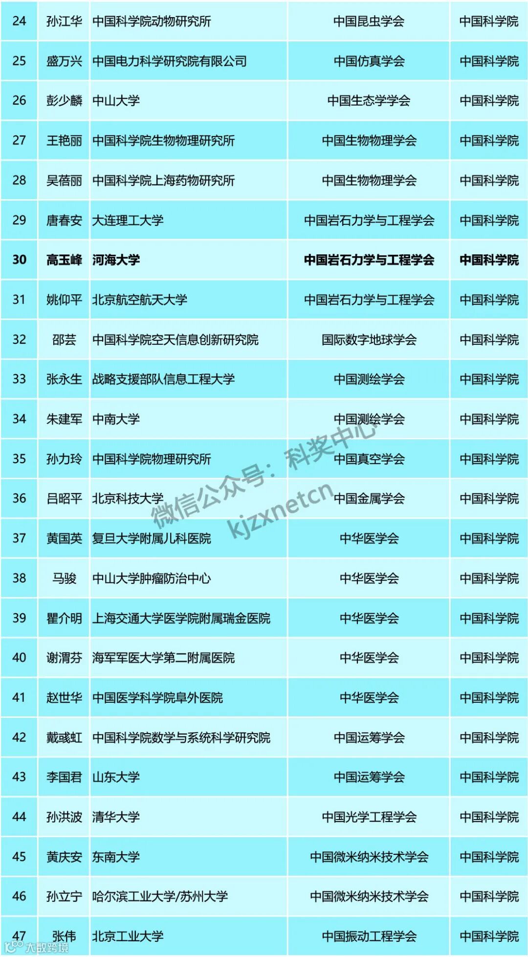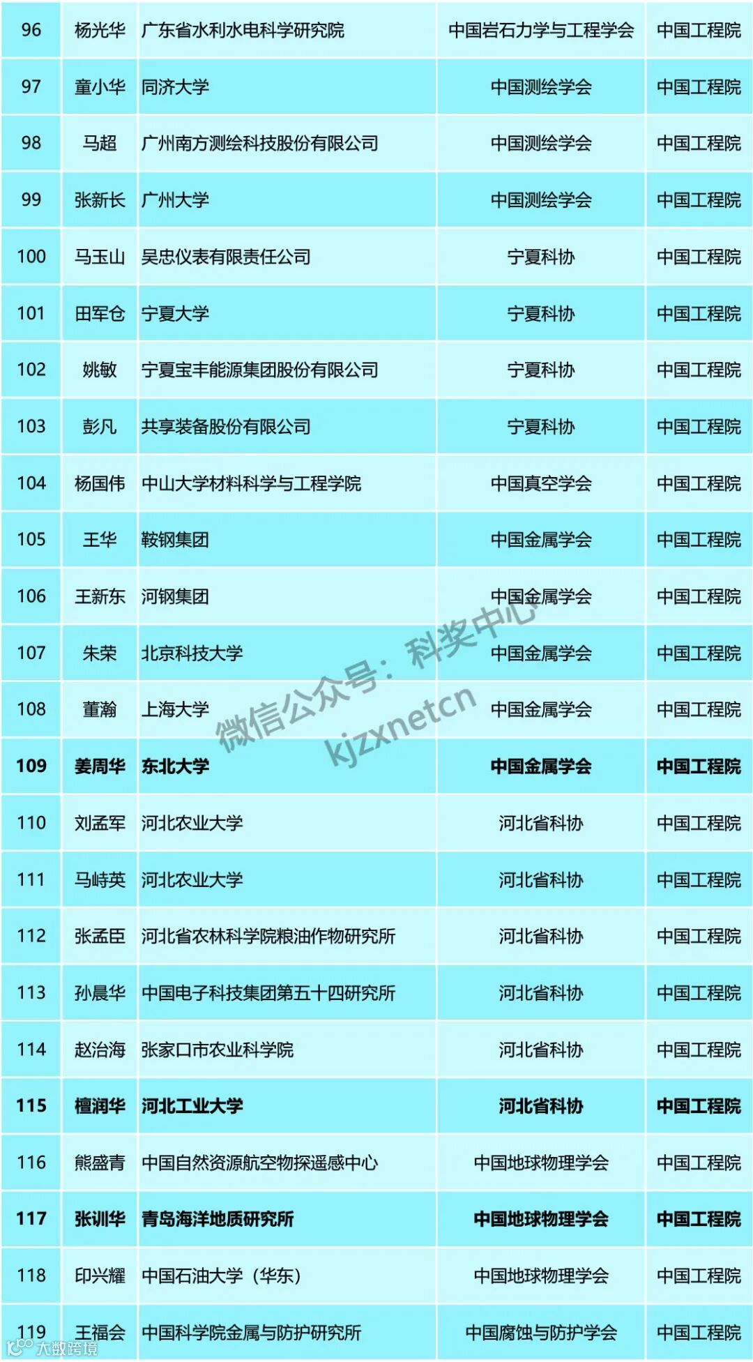 目前科奖中心整理的是各学术团体