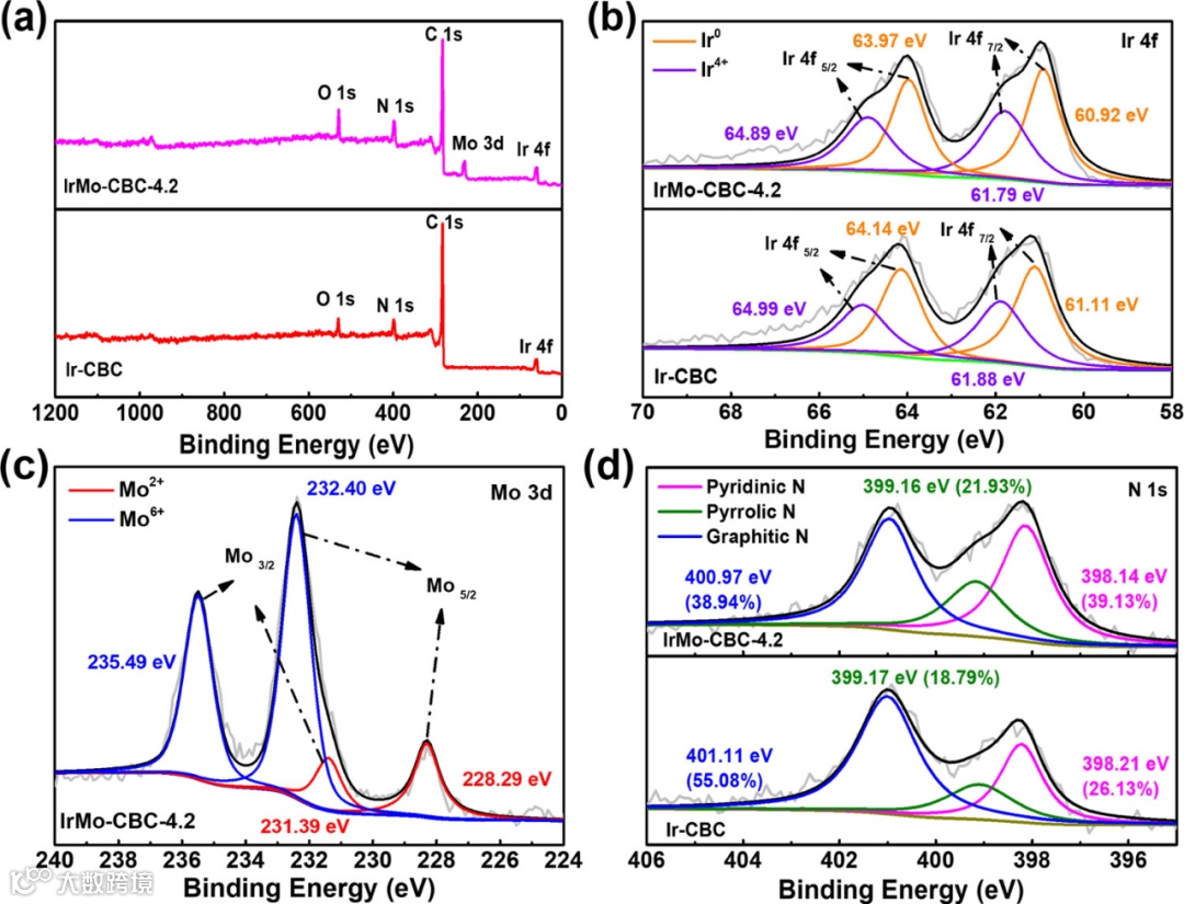 总的来说,本文采用CB[6]衍生的介孔碳作为基体,成功合成了一系列负载IrMo纳米团簇的N掺杂碳电催化剂。研究发现,所制备出的催化剂负载有超细双金属纳米团簇,并具有充足的杂原子N含量、超亲水性和独特的多孔结构,从而产生丰富的活性位点与协同效应,有效提高本征催化活性与稳定性。在优化Mo的附加量后,IrMo-CBC-4.2电催化剂在碱性介质(1.0 M KOH)中表现出优异的HER活性,在10 mA cm–2电流密度下的过电位仅为12 mV,Tafel斜率低至28.06 mV dec–1,法拉第效率高达98%,且在50 mV过电位下具有11.6 H2 s–1的TOF值,性能优于对照电催化剂(Ir-CBC)和商业Pt/C以及绝大多数Ir基电催化剂。该研究为开发贵金属基异质纳米材料以实现能源相关应用的高性能提供了有效指导。