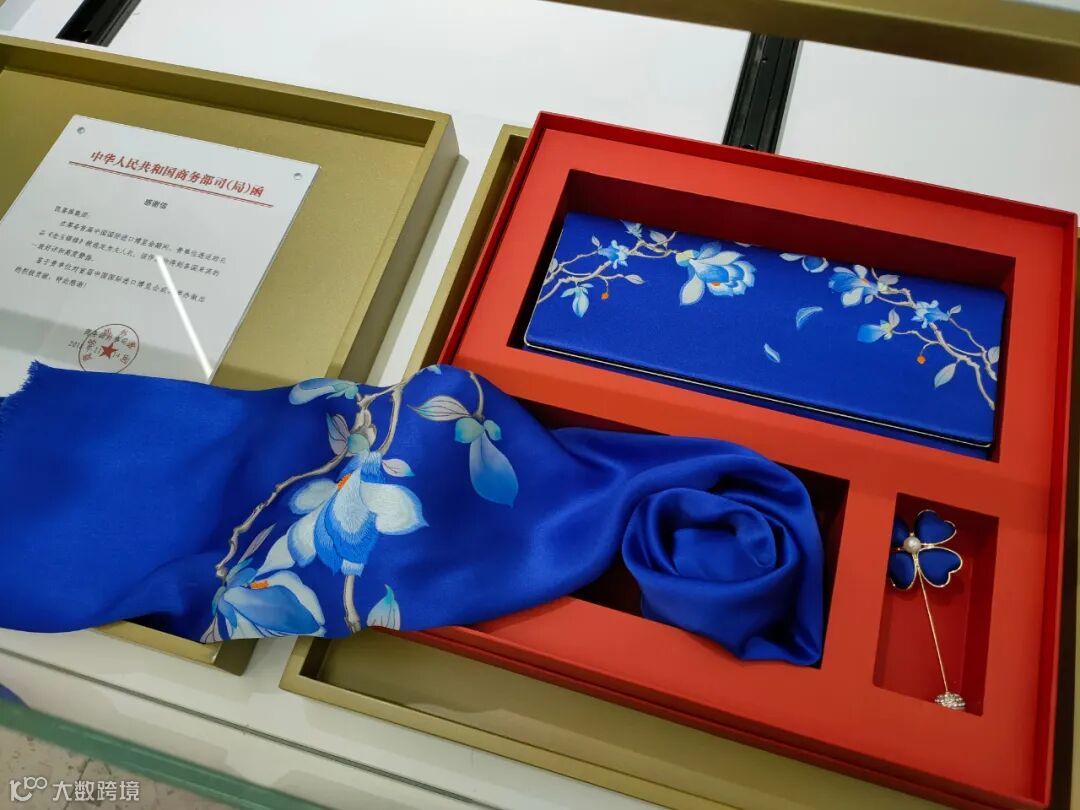 在这个由丝绸打造的华美空间里,我们惊喜地发现凯特王妃订婚时所穿的同款真丝礼服,赫然在立。而不远处就陈列着G20杭州峰会、首届上海进博会时赠送给各国元首夫人们的丝绸礼,这些精美绝伦的“国礼”也是首次在杭州中国丝绸城公开对外亮相。