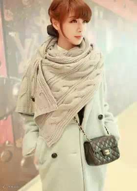 可以是黑色、灰色、也可以是红的,或者是花的,搭配一条浅粉、米白织成的比较有质感的围巾,把注意力集中到了上部,显的人更高挑些