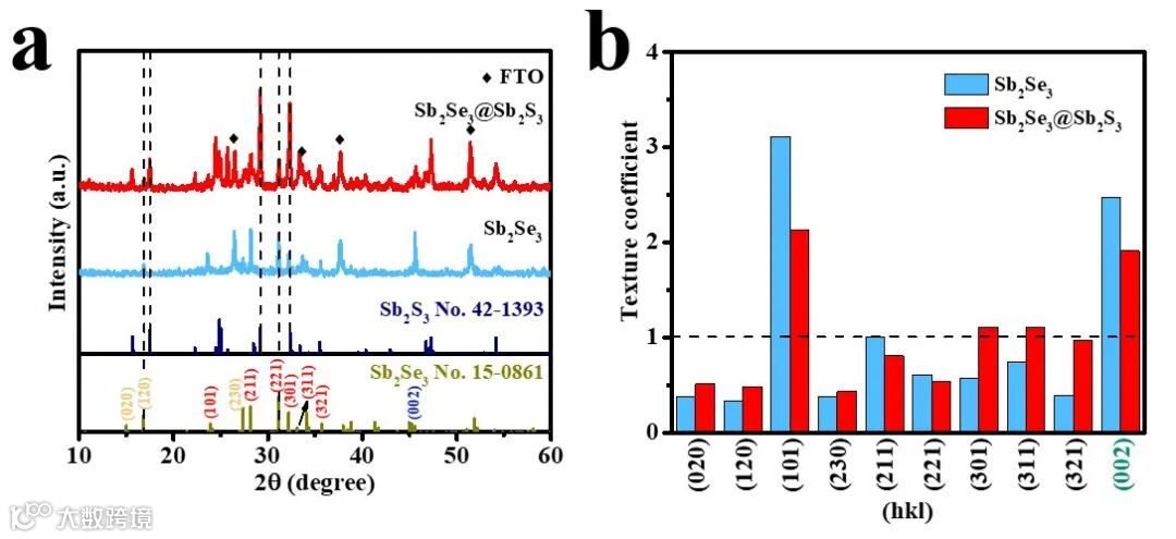 图3 Sb2Se3@Sb2S3光电极结构表征