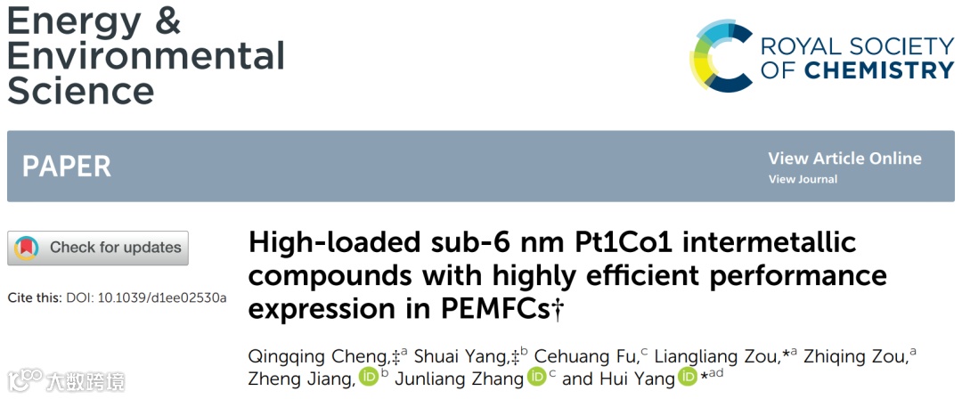 Qingqing cheng, Shuai Yang, Cehuang Fu, Liangliang Zou, Zhiqing Zou, Zheng Jiang, Junliang Zhang, Hui Yang. High-loaded sub-6 nm Pt1Co1 intermetallic compounds with high-efficient performance expression in PEMFCs. Energy Environ. Sci. 2021. DOI: 10.1039/D1EE02530A.