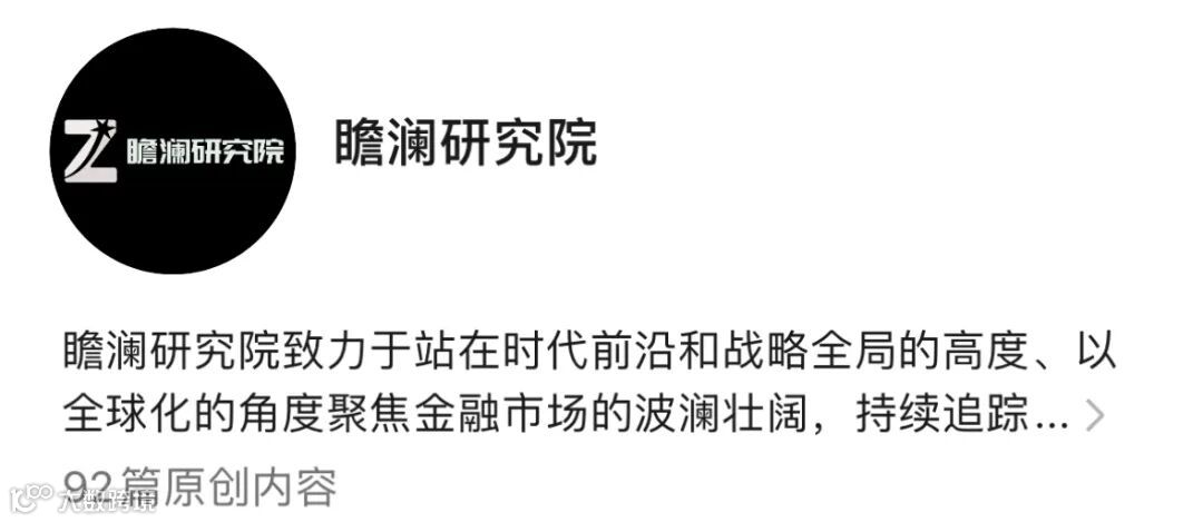 瞻澜研究院致力于站在时代前沿和战略全局的高度、以全球化的角度聚焦金融市场的波澜壮阔,持续追踪宏观政策动向,在纷杂的信息迷雾中提供独到的行业、投资、商业研究,为同伴们寻找得胜之道,不割学生韭菜,不赚贩卖焦虑。