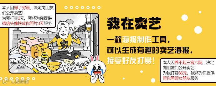 打开小程序,点击“制作我的卖艺海报”按钮,进入自定义海报内容。内容包括四个部分:卖艺原因、打赏金额、卖艺内容、如未完成。其中除了打赏金额可以随你输入之外,另外三项内容都是根据小程序提供的内容随机出现,你可以不停更换,直到看到你满意的。
