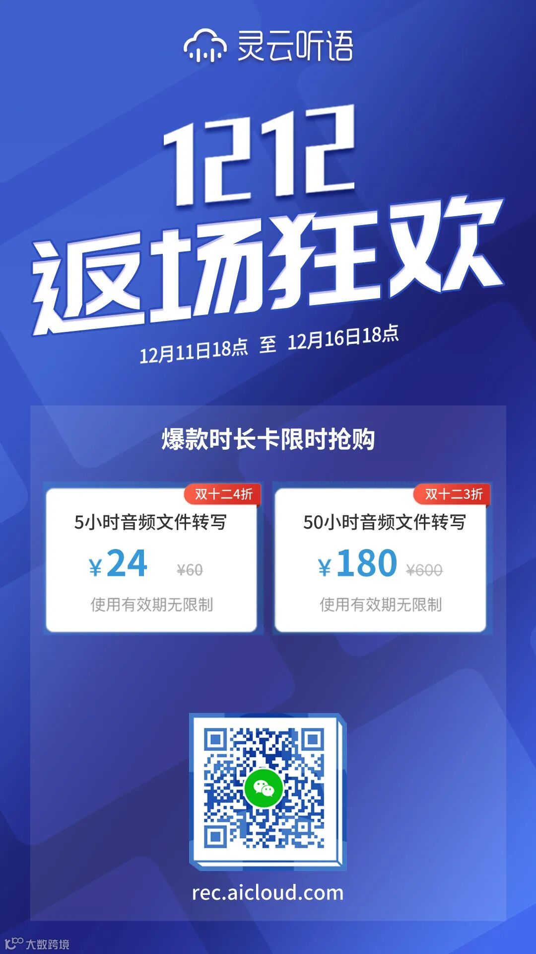 也可以通过点击灵云听语安卓版“首页”的弹窗、广告位图片、第三张Banner图片和“我的”音频转写时长充值,进行低价时长卡购买!