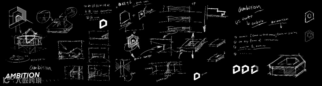 主要由 Rhino 建模,模型区分干净清楚就行了,整体是围绕着D5的 logo 进行设计的,设计好大体造型和体块关系层数等,然后慢慢细化构件以及结构等。