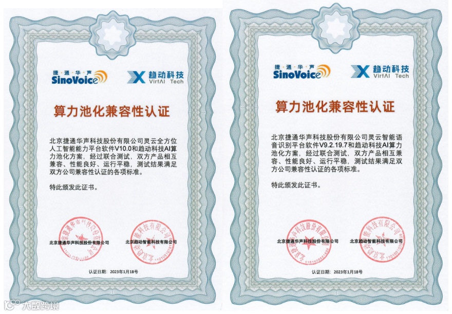 近日,捷通华声推出的灵云全智能能力平台V10(灵云AICP)、灵云语音识别软件完成与趋动科技OrionX AI算力资源池化解决方案兼容性互认证。经过联合测试,双方产品相互兼容、性能良好、运营平稳。