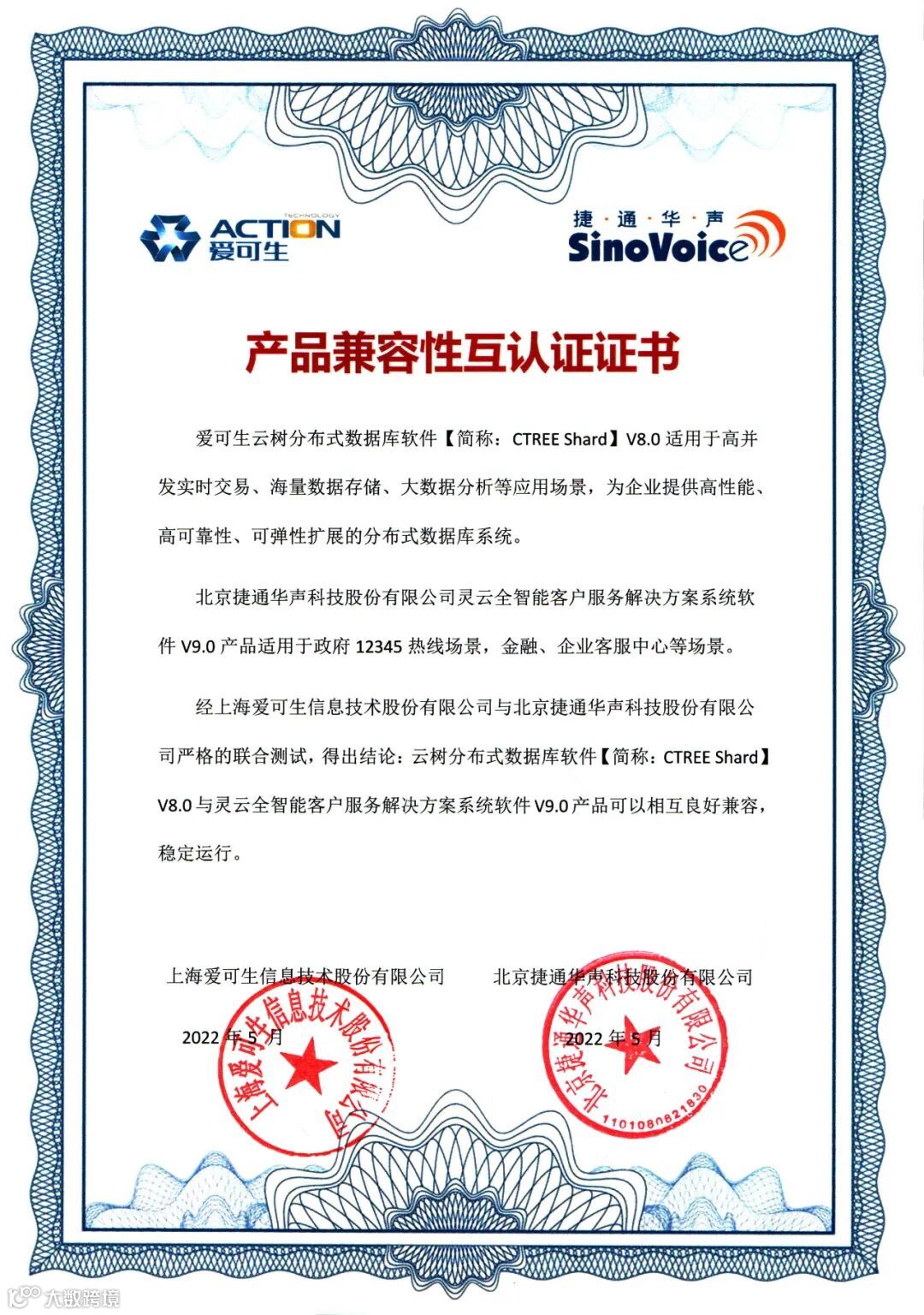 近日,捷通华声与爱可生完成灵云全智能客服解决方案与云树数据库集群管理平台软件【简称:CTREE DMP】、