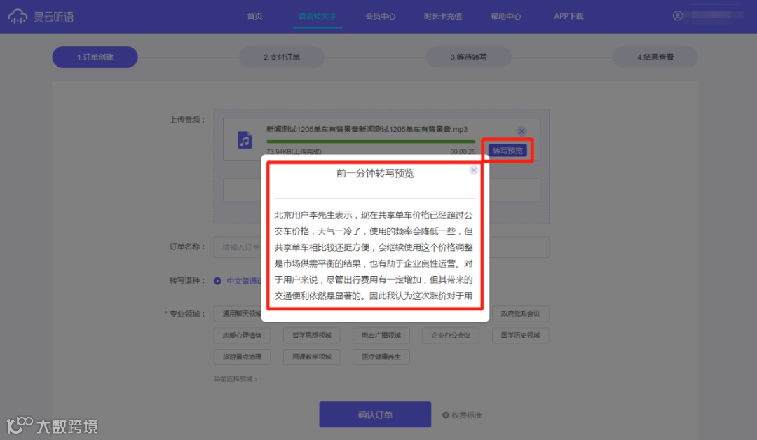 有些用户在使用录音软件和设备时,没有编辑名称的习惯,所有录音都是系统自动匹配的名称,在转写前还需要一个一个打开听,很是麻烦。灵云听语Web版提供转写预览功能,音频上传完即可查看前一分钟语音转写结果,方便用户确认音频内容。