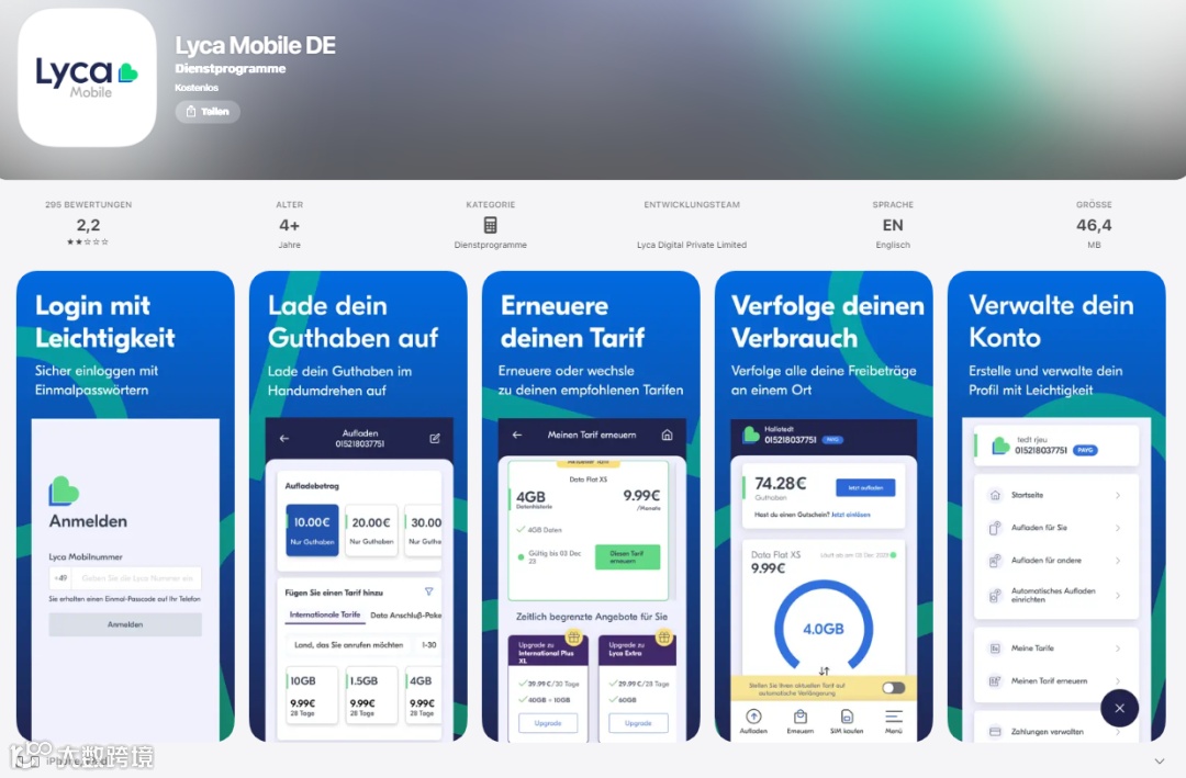 Lyca Mobile Germany是全球最大的移动虚拟网络运营商(MVNO)之一,不拥有自己的移动通信基础设施,而是通过租用德国主要电信运营商的网络为用户提供服务