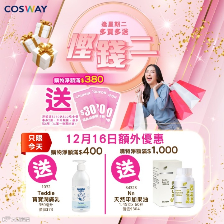 *如有任何爭議,Cosway (HK) Ltd保留最終決定權