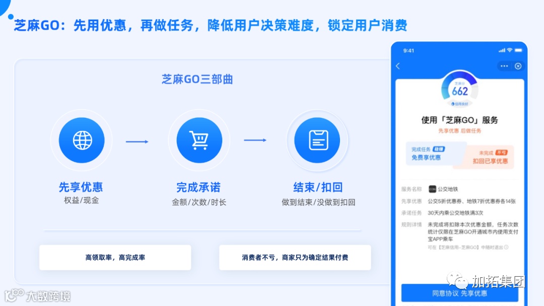 所以,总结来说,芝麻GO可以助力商家拉新、复购、提升客单价,并获得确定性的ROI。加拓集团为进一步助力中小企业商家解决获客、留客、转化难等实际问题,重磅对接芝麻GO,解锁支付宝新功能,让企业没有难做的生意,共同赋能商家数字化转型。