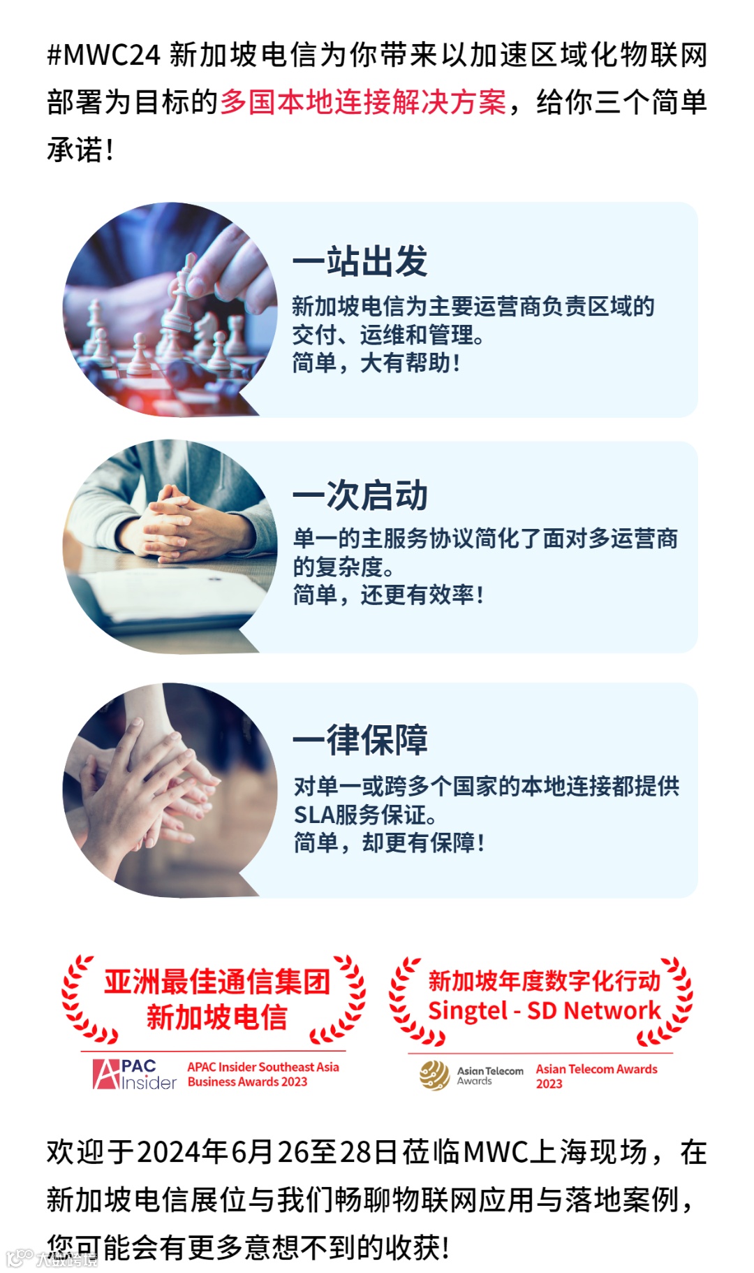 MWC24预览|新加坡电信多国本地连接,快速实现物联网部署与工业物联网转型