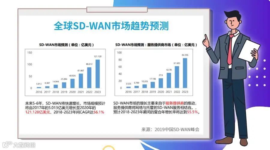 在2019中国SD-WAN峰会上便预测:超过半数的市场服务是由运营商提供,因为运营商能提供更好的一站式网络与托管服务,为企业带来更高的SD-WAN服务质量。