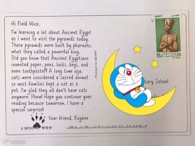 Read-A-Thon的时间是从11月18日到12月5日。每到一个固定的日期,老师会从完成阅读目标的小朋友中间选出一个人来念明信片。下面是小老鼠的行程——