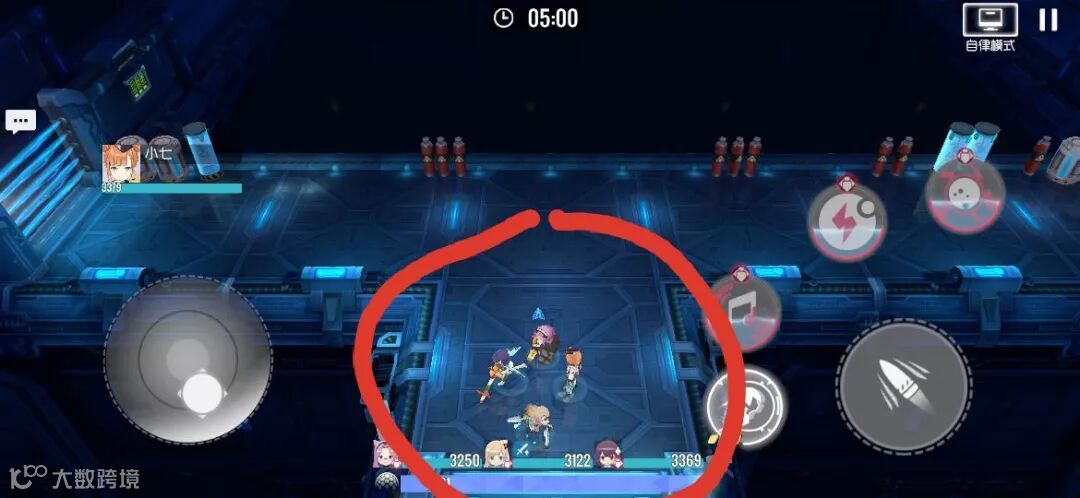 如图位置来躲跟踪飞弹,在该位置下飞弹很容易撞到墙壁。如果实在不行,躲不掉飞弹的玩家可以使用本期的紫卡UP角色:战术洛可可,大招可以生成一个防御涂层,全队不会受到弹幕伤害,十分好用!
