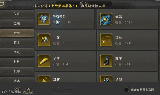 商会已然爆仓!一万多件金装,一千多页装备,海量货品任你选择!整个市场流动极快,自由交易一片繁荣。