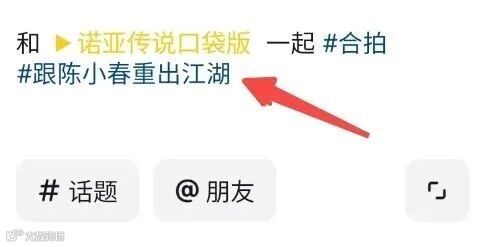 合拍完成后,在发布页面添加指定话题:#跟陈小春重出江湖 和你自己想说的话,点击发布。