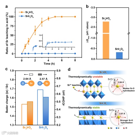 (2) 建立了铱酸锶的酸稳定性与Sr–O键强之间的关联