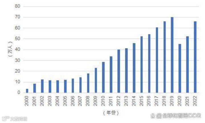 自2000开始,特别是2008年之后,中国的出国留学生数量呈现高速增长的态势,越来越多的国内学生开始瞄准海外求学方向。据教育部统计,改革开放以来,中国的留学人员累计超过800万人。