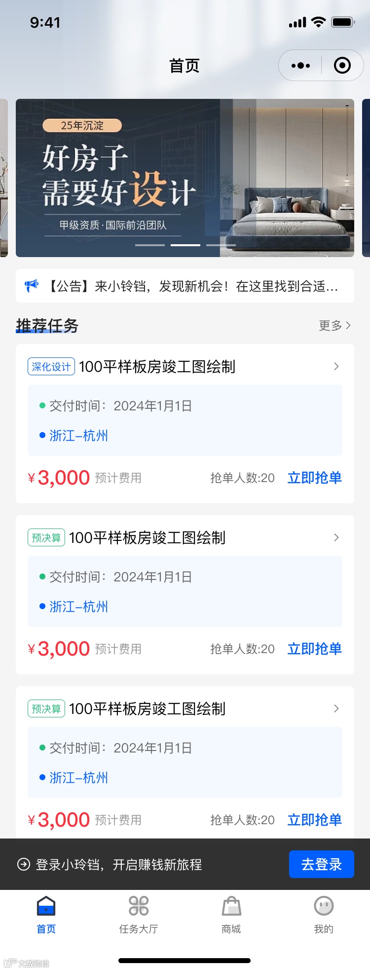 设计师可以抢单,双方在线签订设计合同。设计师需按照客户的要求,在规定时间内完成设计稿的交付。这种高效的协作模式,既保证了设计师的创作空间,也满足了用户对装修效果的高期待。