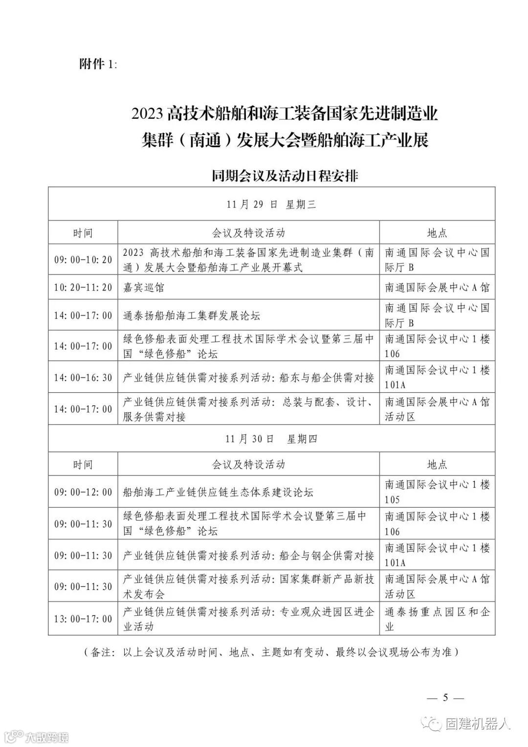 2023高技术船舶和海工装备国家先进制造业集群(南通)发展大会暨船舶海工产业展将于2023年11月29日-30日在南通举行,固建机器人受邀出席。