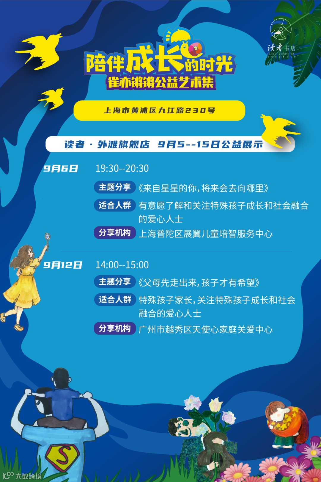《陪伴成长的时光》雀亦锵锵公益艺术集,是在上海市慈善基金会静安区代表处的支持下,由上海市慈善基金会多特瑞携手关爱基金、君爱公益专项基金发起单位共同主办,携手8家特殊教育机构,于9月5日--10月7日,在上海8个行政区的28个不同地标空间,通过公益文创、公益展示、公益演出、公益微电影、公益主题研讨等多元表达形式,传递特殊青少年的心声:“我们渴望被看见和认可!”