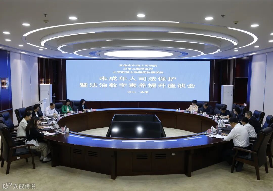 5月16日,北京互联网法院、河北省承德市中级人民法院、北京师范大学新闻传播学院联合举办关于加强未成年人司法保护暨数字素养提升座谈会,会议在承德中院召开。北京互联网法院党组书记、院长姜颖,党组成员、副院长赵瑞罡,综合审判三庭(少年法庭)负责人颜君及部分干警;承德中院院长党组书记、院长蔺静,党组成员、副院长丁一,少年庭庭长李亚平及部分干警;北京师范大学新闻传播学院党委书记方增泉,党委副书记祁雪晶;承德市教育局二级调研员贾云峰以及承德市第二中学副校长徐光宇等参加会议。会议由蔺静院长主持。