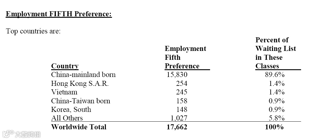 1. EB(职业移民)类别,等待人数为125,988人,比去年增加4.5