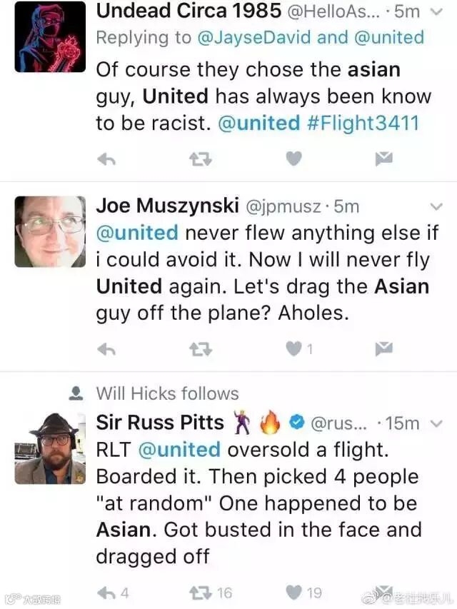 “他们是特意“抽中”亚洲人的,美联航种族歧视是出名的。”