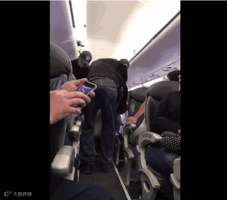 结果美联航叫来了三名警察进入机舱,暴力将这名男乘客拖出机舱。