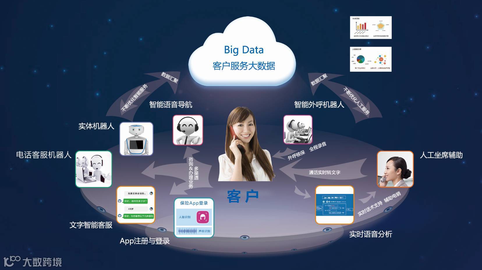 这些智能化的服务,在提升用户体验的同时,也大幅减少了企业的人工服务成本。面向金融呼叫中心,捷通华声推出的灵云智能语音分析系统已在数家银行、保险公司的大型呼叫中心上线应用,通过实时转写坐席与客户的对话,不但能实现坐席人员的服务质量自动打分或给人工坐席实时提供话术支持,还能从海量的客服大数据中挖掘重要营销信息,有效提升金融企业的整体服务能力。