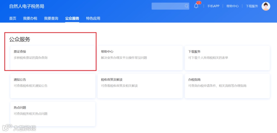 (2)登录自然人电子税务局网页版,点击【公众服务】—【票证查验】,进入可查询页面,选择票证查验,点击【立即查询】,输入查验信息即可。
