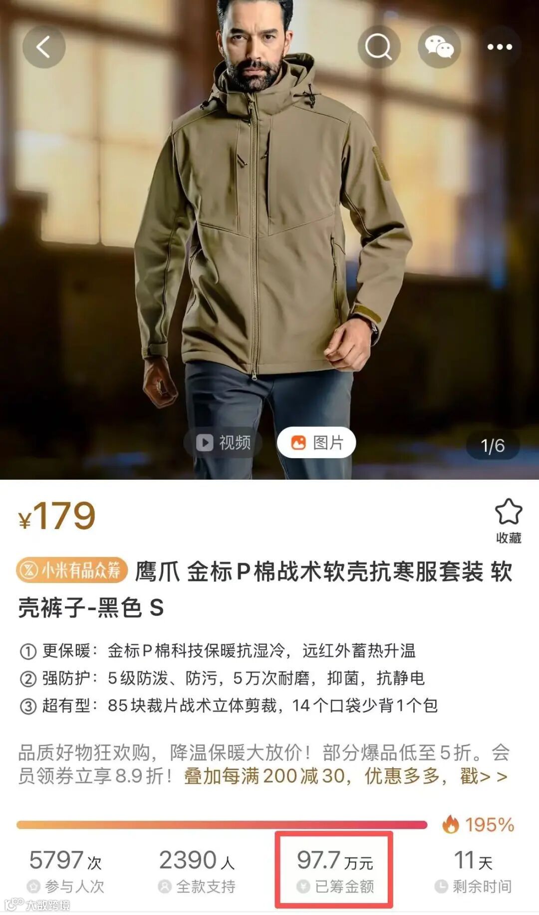 小米有品最近上新了硬核狠货,卖得超火爆——金标P棉战术软壳抗寒服,179元起,众筹2天近百万!