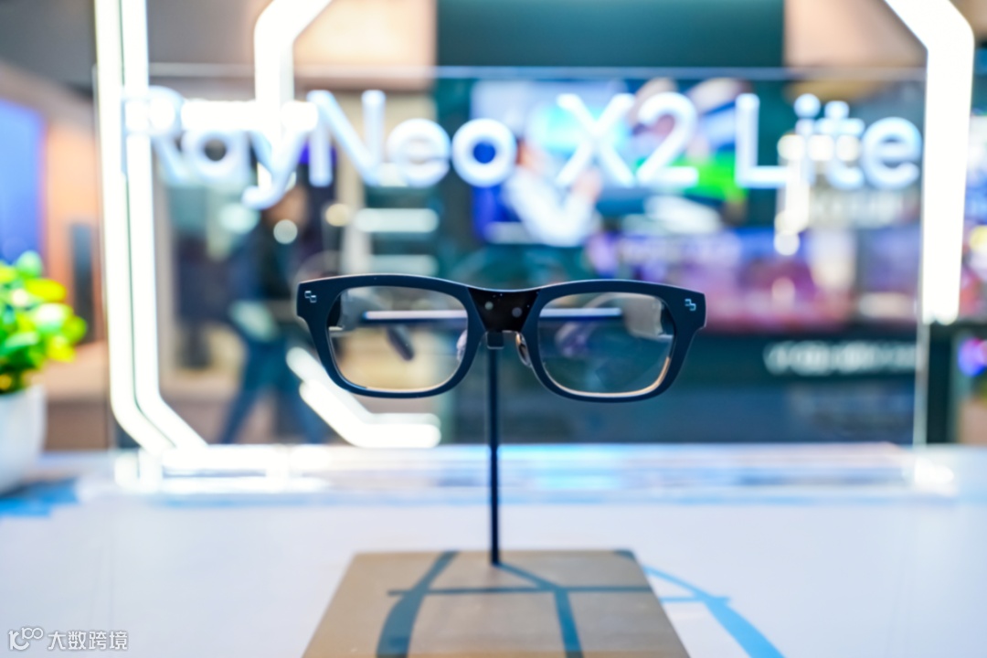 那除了这些比较重的VST头显,本届CES同样有不少OST方案的AR产品亮相。首先是雷鸟带来了自家光波导路线的最新产品X2 Lite,重量仅60g,且搭载了高通AR1 Gen1处理器,可以运行即时翻译、大模型语音助手等AI应用。不过续航、价格等信息就尚未公布。