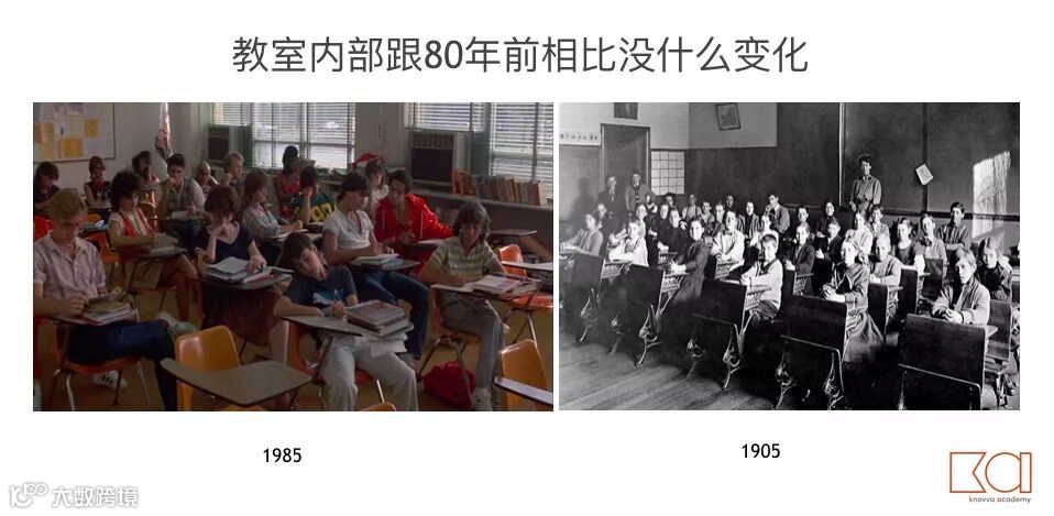 那么,我们的教室,1985 年的教室和 1905 年的教室。我们可以看到教室没有什么变化,那么到底有什么变化呢?学生不同了。